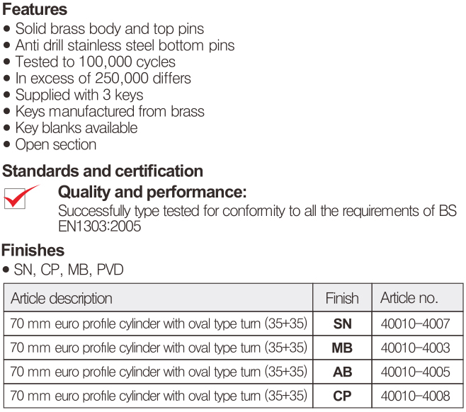 EURO PROFILE KEY AND TURN CYLINDERS - 6 PIN TO DIFFER
